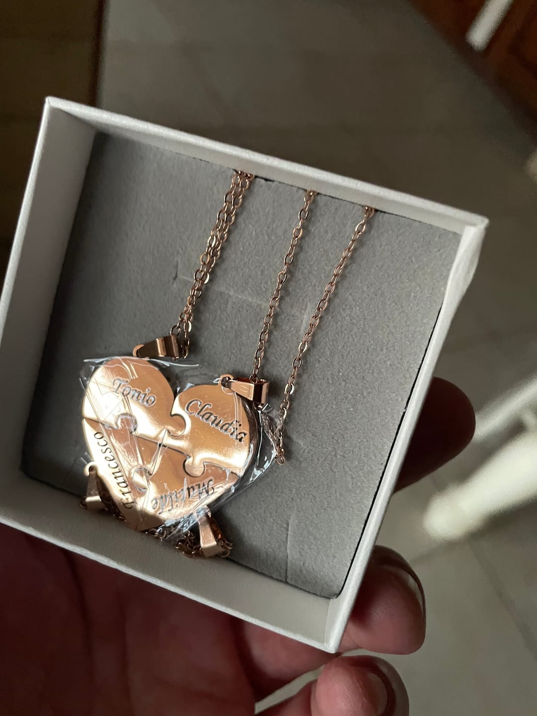 Ich habe dieses wunderschöne Collier als Weihnachtsgeschenk gefunden. Die Qualität und die Gravur sind perfekt, und ich freue mich schon riesig, ihre Reaktionen zu sehen!